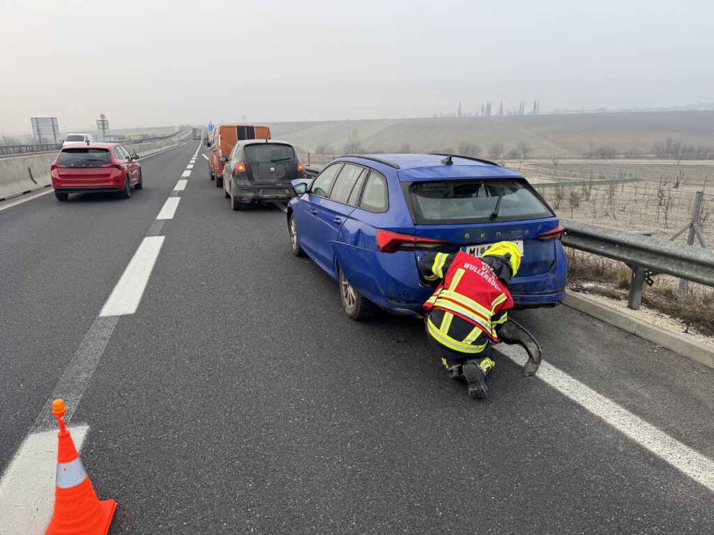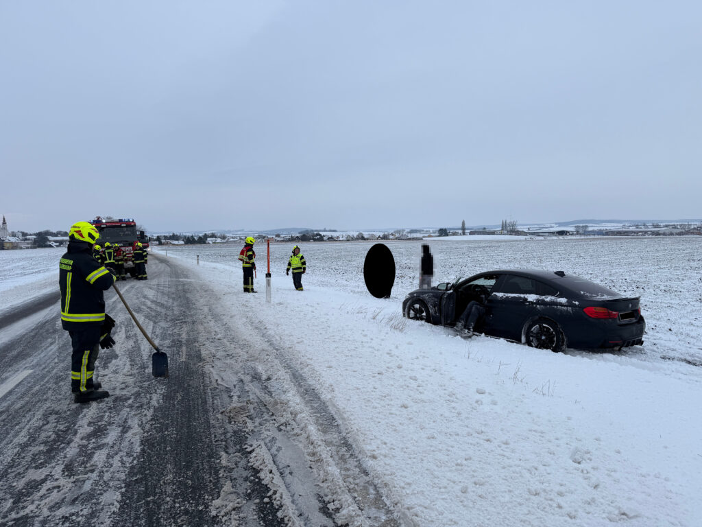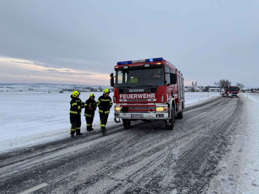 Heute Morgen wurden wir infolge der winterlichen Fahrverhältnisse nach nächtlichem Schneefall zu einer Fahrzeugbergung zwischen Wullersdorf und dem Kreisverkehr der Schnellstraße S3 alarmiert. Ein PKW war von der Fahrbahn abgekommen und im Straßengraben zum Stillstand gekommen.