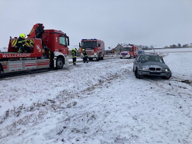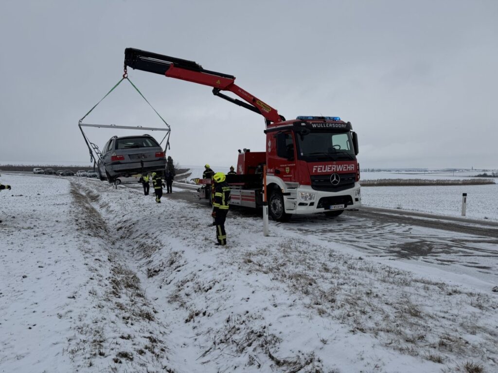 Am Montag Mittag wurden die Feuerwehren Aspersdorf, Hollabrunn und Wullersdorf während des Schneetreibens zu einem Verkehrsunfall mit Menschenrettung alarmiert. Unverzüglich setzten sich 3 Fahrzeuge der FF Wullersdorf in Richtung Einsatzort in Bewegung. Beim Eintreffen war die Person noch im PKW und wurde sofort von den Mitgliedern der FF Wullersdorf betreut. Nach dem Eintreffen des Notarztes wurde gemeinsam die Menschenrettung des PKW Lenkers durchgeführt.